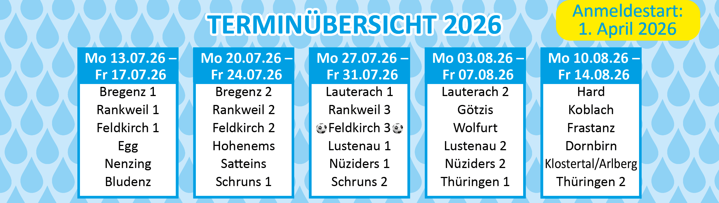30 einwöchige Camps in den Sommerferien